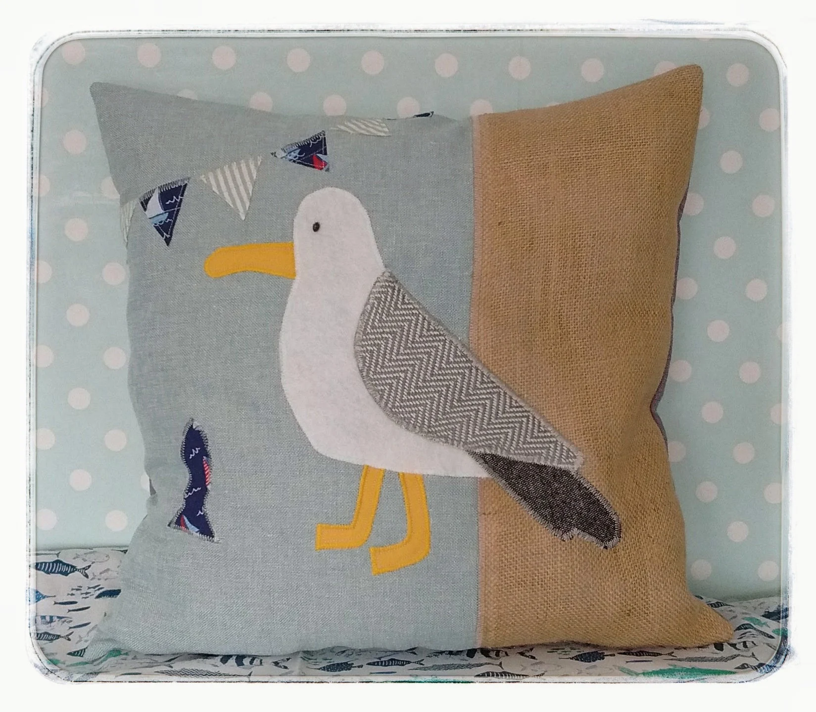 Luxury Seaside Cushion – The Seagull & The Fish